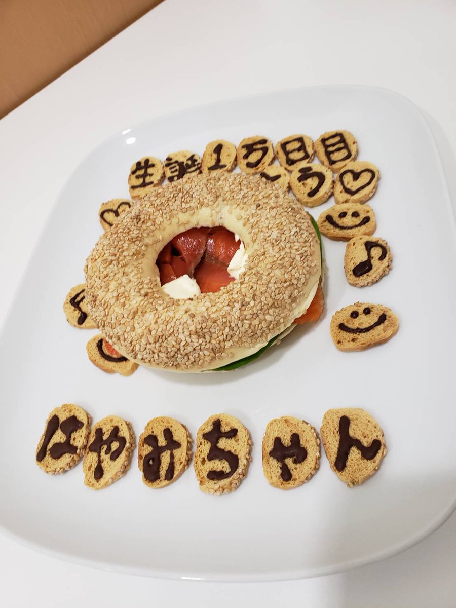 未来を描いたホワイトボードとポコベーグルカフェさんで作っていただいたお祝いプレートも添えて!