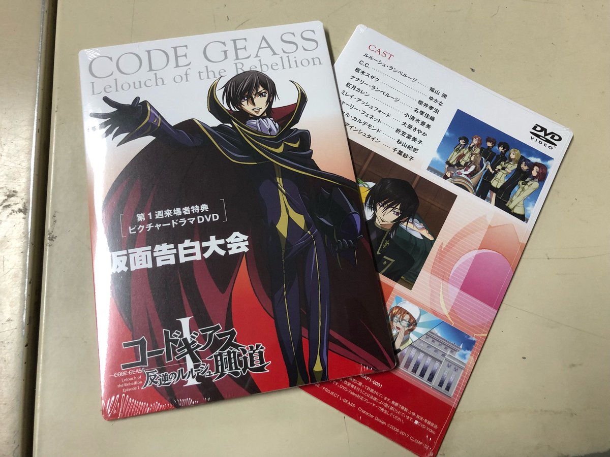 来場者特典のおさらいです。1週目はピクチャードラマDVD。そのタイトルも「仮面告白大会」!はてさて誰が何を告白するのか、是非手に入れてご確認くださいませ。sun_コウジロウ #geassp geass.jp/L-geass/theate…