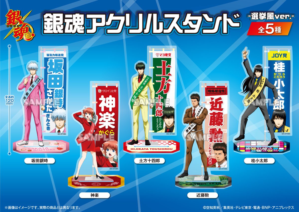 【商品】続報!衝撃の選挙風描き下ろし商品がブシロードクリエイティブからまだまだ登場!!📢6月にはタスキ風フェイスタオル、7月にはビッグカンバッジと、のぼりデザインがインパクト抜群なアクリルスタンドが登場します! bushiroad-creative.com(BCR/M子)#gt_pr #gintama