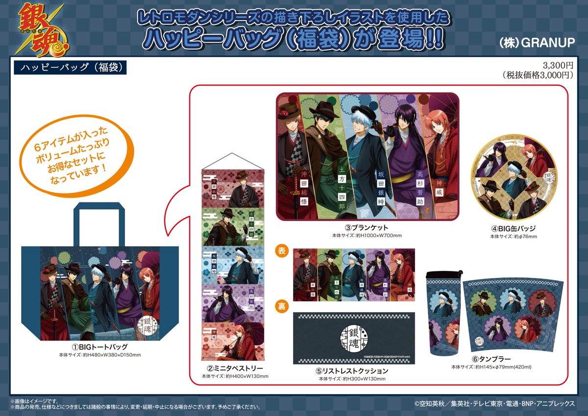 【商品】レトロモダンシリーズの描き下ろしイラストを使用したボリュームたっぷりのハッピーバッグ(福袋)が登場します!!是非チェックしてみてください♪ granup.shop (GRANUP/N) #gt_pr #gintama
