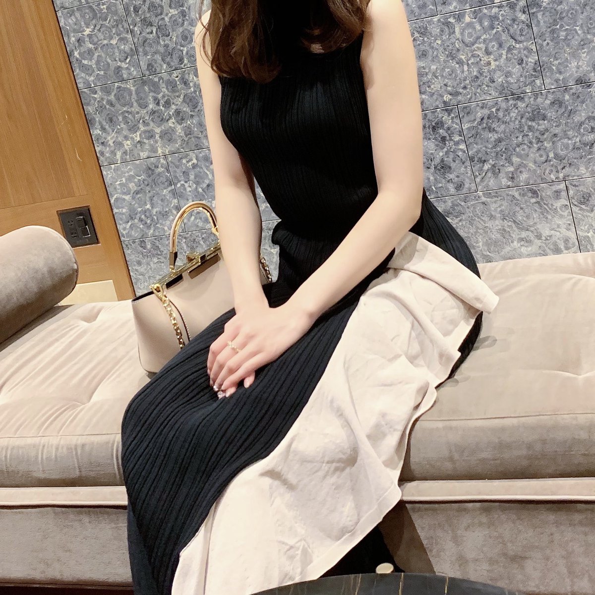 このワンピース立ってきたときのラッフルのラインが綺麗すぎる💍(座ったらなんか変な感じになった🤣)ちょっとおめかししたい時に着たかった1着♡お腹いっぱい食べたので無事にお腹が立派になりました🤲🍴#herlipto