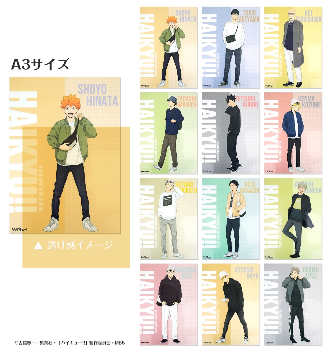 澤村大地、及川 徹、黒尾鉄朗、木兎光太郎、北 信介の堂々とした立ち姿が魅力的です。