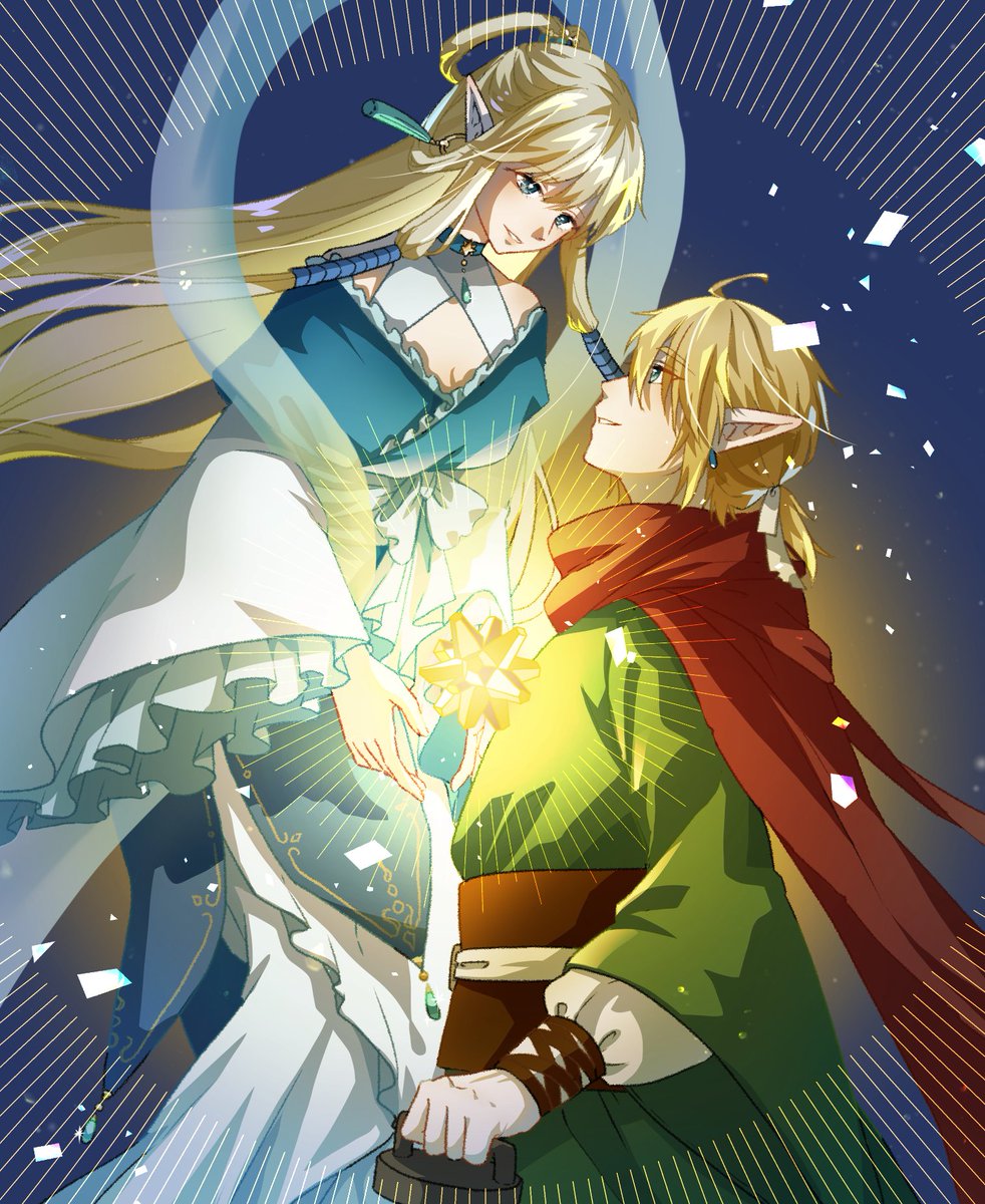 I painted a picture of hylink that pays homage to the pose of Tidus and Yuna from Final Fantasy X/X-2. Thank you for your request!