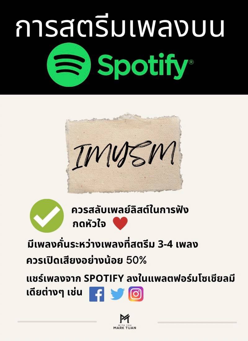 ทุกคนสามารถสตรีมเพลงนี้ร่วมกับเพลงอื่นของ #Mark ระหว่างที่เรารอเพลง #imysm ค่ะ ระหว่างสตรีมสามารถกด Shazam เพลงได้นะคะ 😉