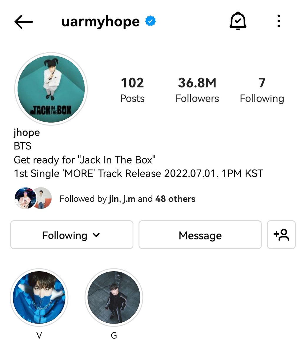 #jhope @BTS_twt อัปเดตหน้าโพรไฟล์ Instagram