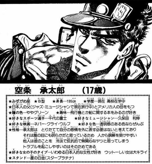 ここで承太郎のプロフィール、特に性格の項目を見てみましょう