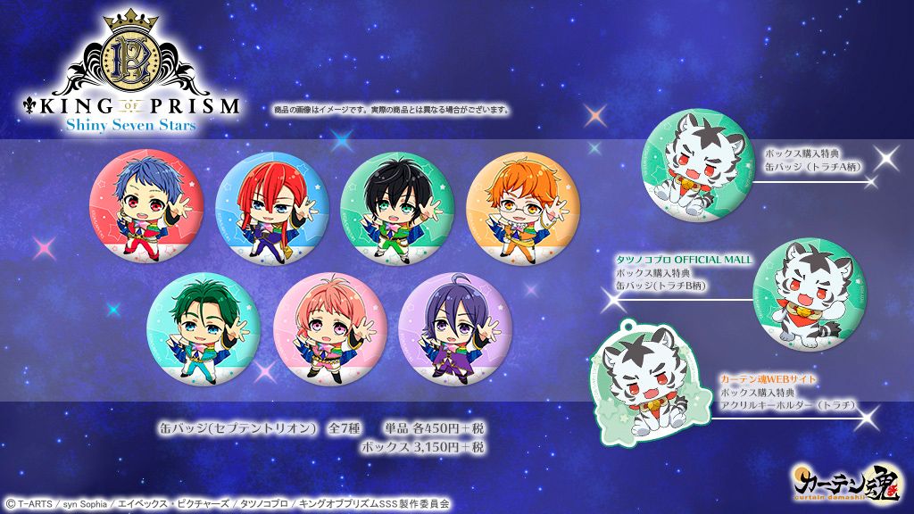 KING OF PRISM WEB SHOPでの購入特典として、トラチの缶バッジがついてきます!以下ページで7月12日~8月5日まで、予約受付中!🌟
