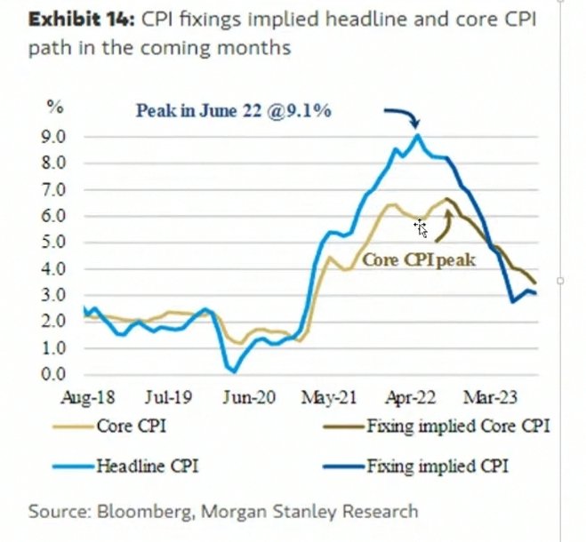 แต่ที่หุ้นยังไม่ขึ้น เพราะ core CPI ดันปรับตัวขึ้น อย่างไรก็ตาม คุณบอม KS และ Morgan Stanley มองว่า Core CPI น่าจะเจอจุดพีคตรงนี้พอดี และจะค่อยๆลงไปพร้อมกับ CPI ในเดือนหน้าๆ และหุ้นจะเริ่ม U-turn