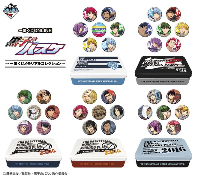 【バンプレスト】一番くじONLINE 黒子のバスケ ~一番くじメモリアルコレクション~ (全5種)が登場!過去の一番くじの描きおろしイラストを使用した缶バッジのセット(7個+缶ケース)です。販売期間は12月6日(水)~12月25日(月)まで。