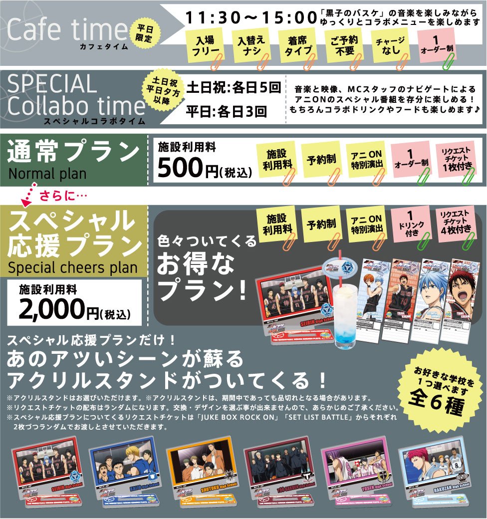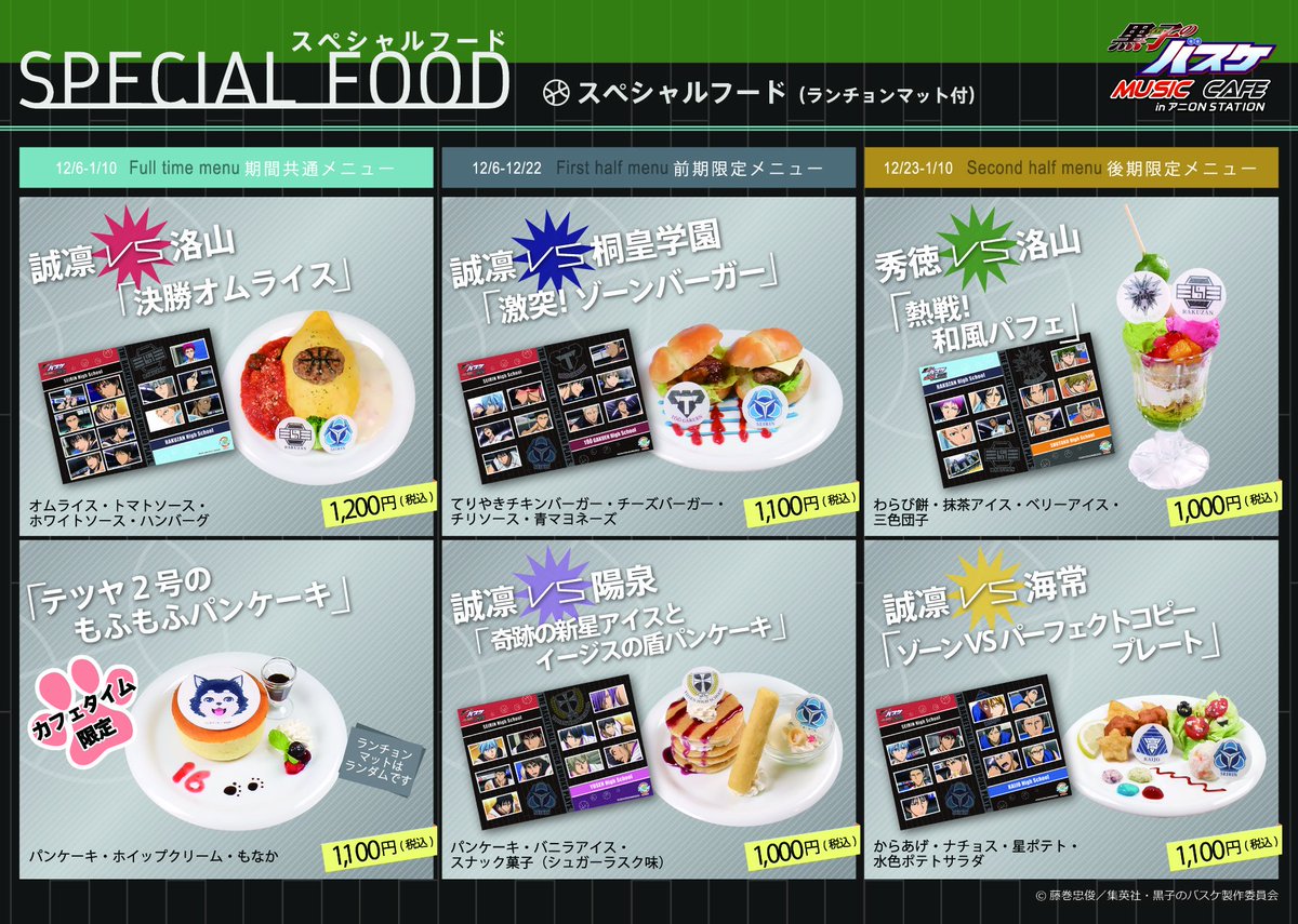 【アニON】12月6日(火)より開催の「黒子のバスケ MUSIC CAFE in アニON STATION」のコラボドリンク、フード等詳細を公開!スペシャルコラボタイムは予約制、11月26日(土)10:00から! tv.kurobas.com/goods/2016/11/… #kurobas