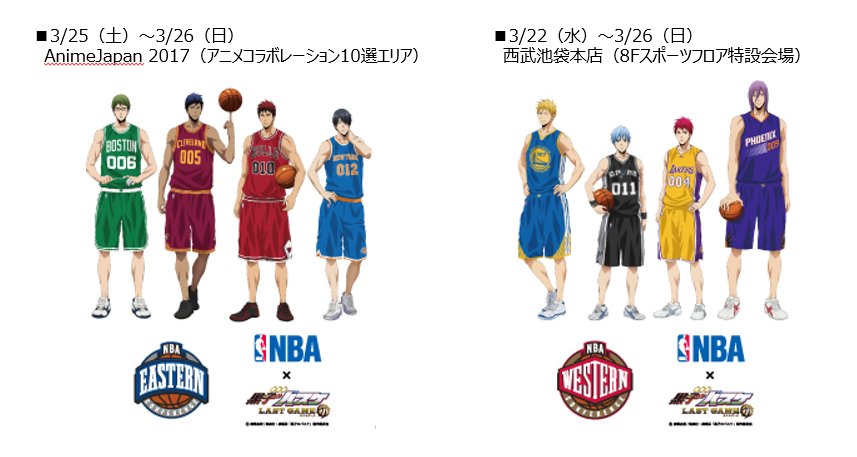 【NBAコラボ】本コラボレーションがAnimeJapan 2017にて「アニメコラボレーション10選」の1つに選ばれました!またNBAコラボのキャラクター等身大パネル等を2箇所にて展示することが決定です!詳細⇒ kurobas-lg.com/info/884/