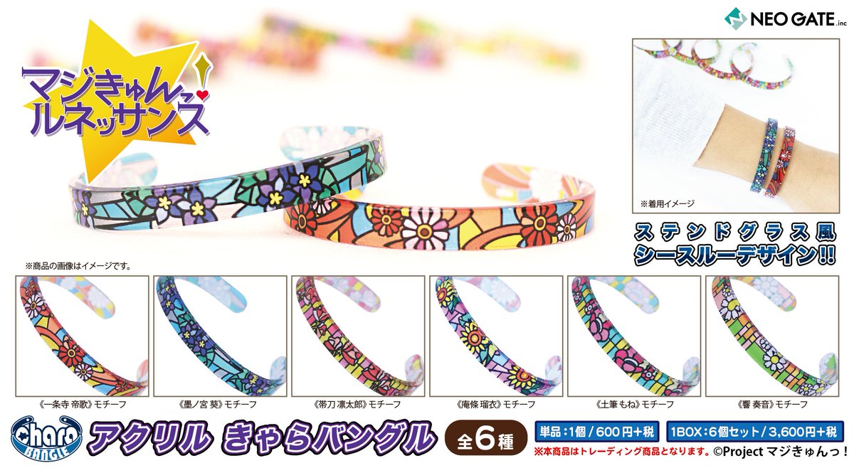 【速報】「マジきゅんっ!ルネッサンス」きゃらバングルの発売が決定!キャラクターモチーフのアクリル腕輪のトレーディング商品です!ステンドグラス風デザインがとっても可愛い♪本日よりご予約受付開始です!詳細はこちら→goo.gl/rpAOpn #magic_kyun