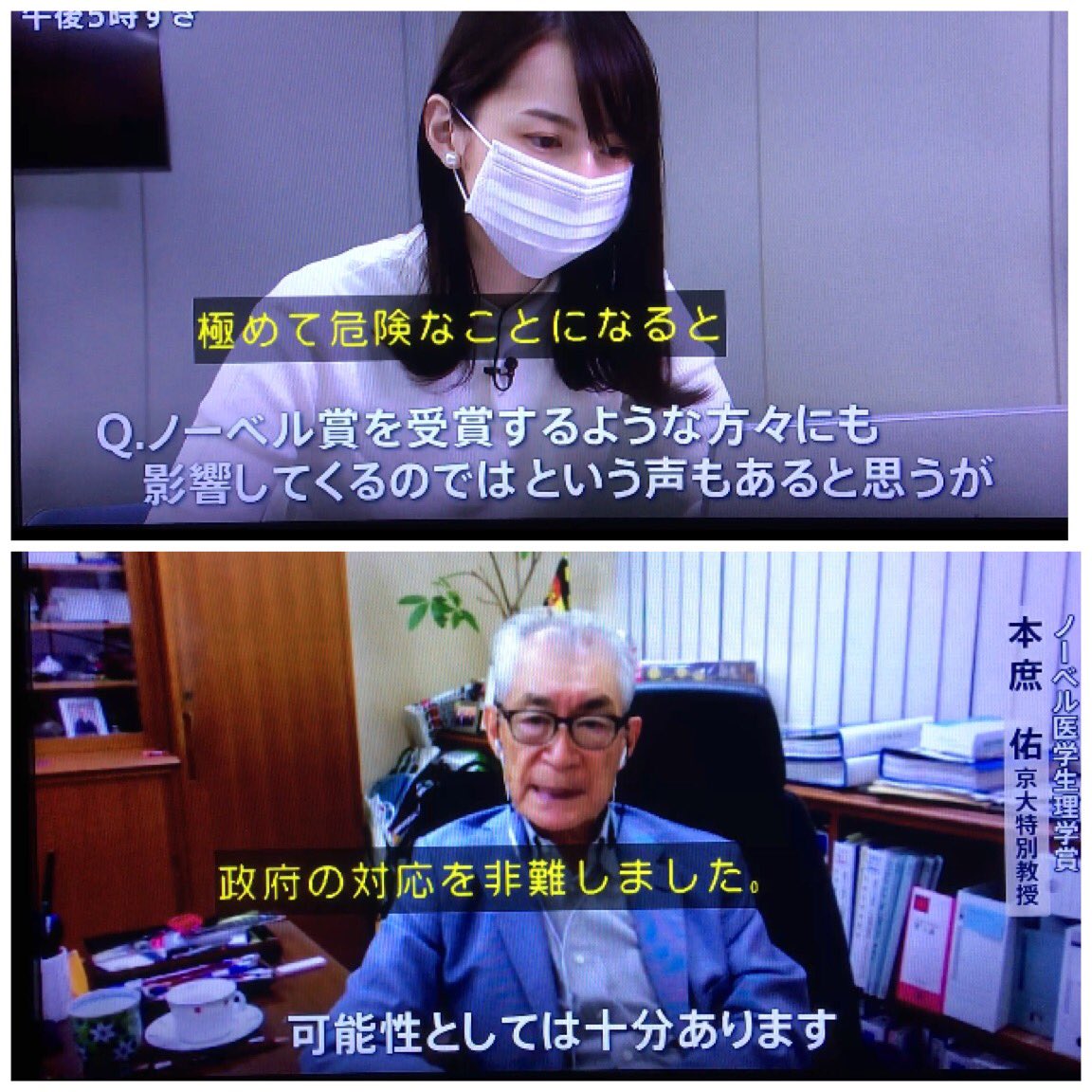 ノーベル医学生理学賞の本庶佑教授が政府の対応を非難!!