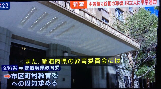 故中曽根康弘元首相の合同葬に合わせ、文部科学省が全国の国立大などに、弔旗の掲揚や黙とうをするよう通知!!