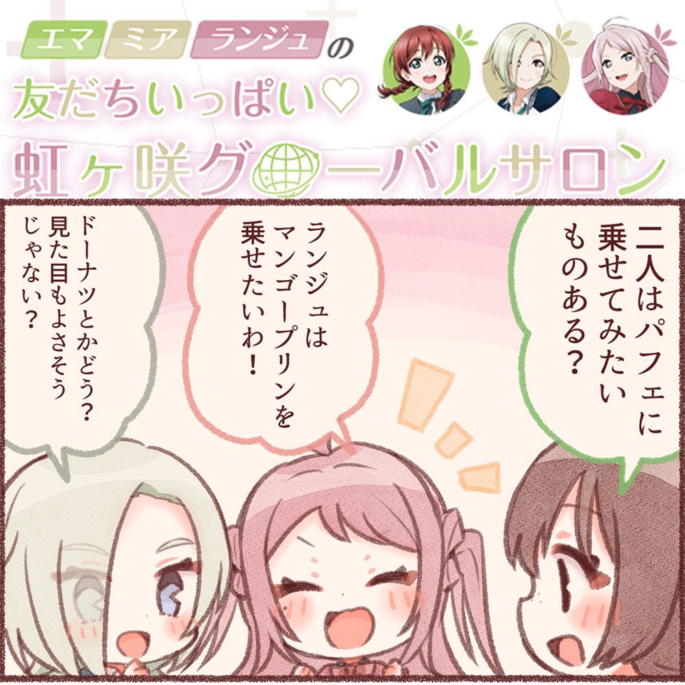 広がれ虹のWA! 虹ヶ咲学園スクールアイドル同好会テーマ別活動・グローバル交流チーム エマ・ミア・ランジュのツイート募集第11弾開始! -gs.dengeki.com/news/160612/