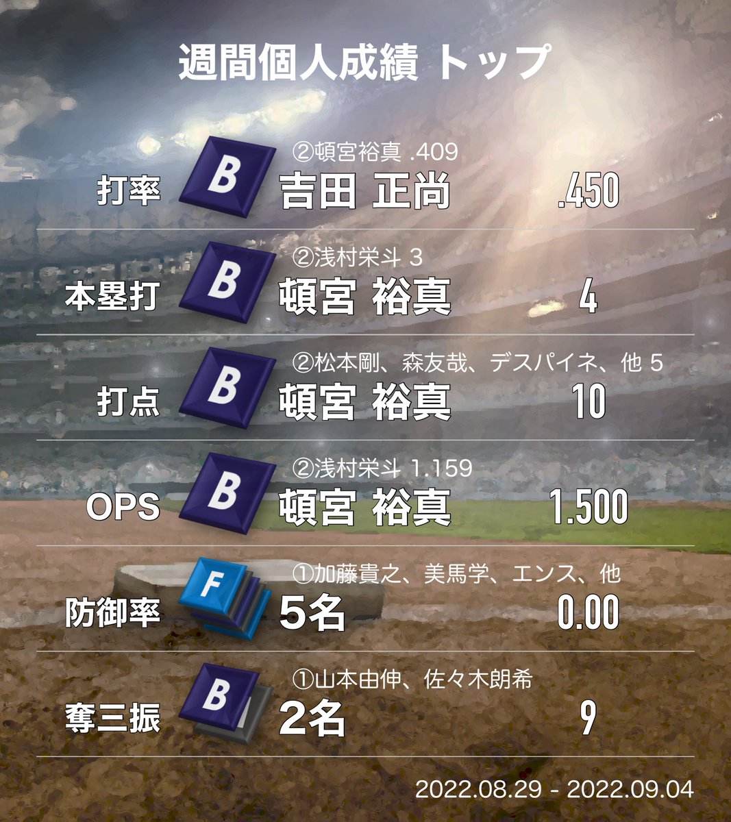 パ・リーグ 今週の結果(8/29~9/4)