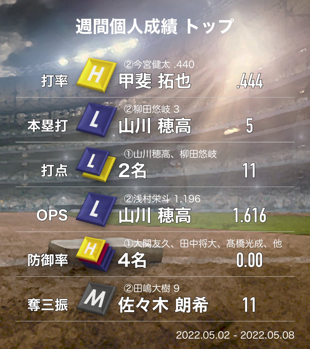 パ・リーグ 今週の結果(5/2~5/8)