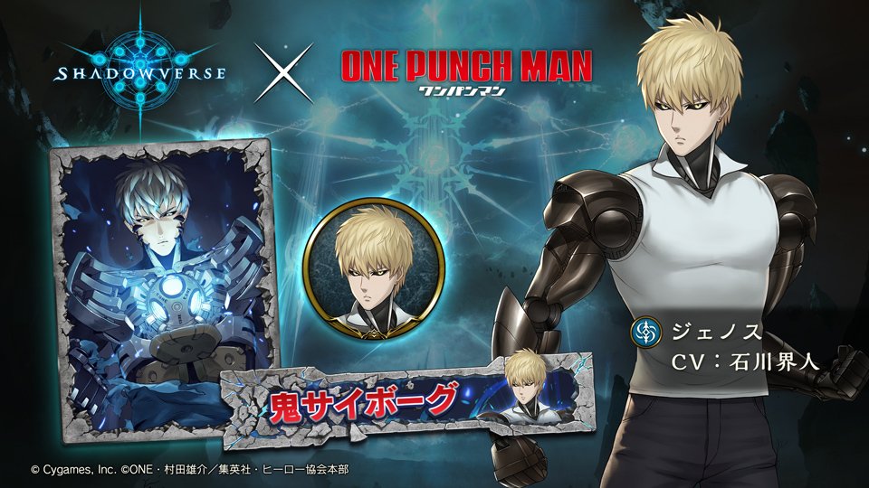TVアニメ「ワンパンマン」と本格スマホカードバトル「Shadowverse」のコラボが本日5/21(火)より始まりました!特別ログインボーナス、サイタマ、ジェノス、戦慄のタツマキのリーダースキン販売などを実施!特設サイト→