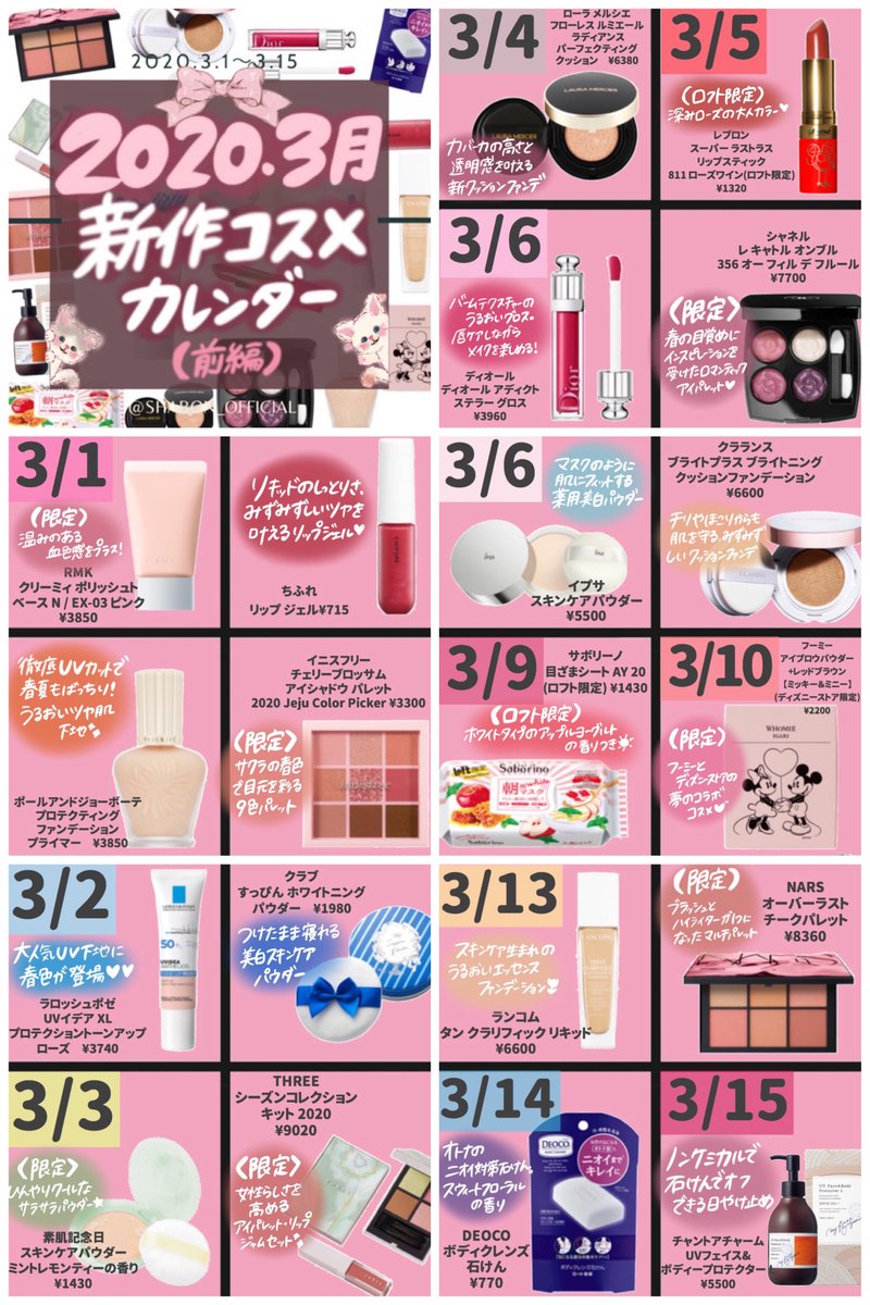 今日から2月💫ということで2月1日から15日までに発売の新作コスメをピックアップしてカレンダーを作成しました🥰春を感じるステキなコスメがたくさんで楽しみですね🌸💕※発売日は変更になることもあります🙇♀️