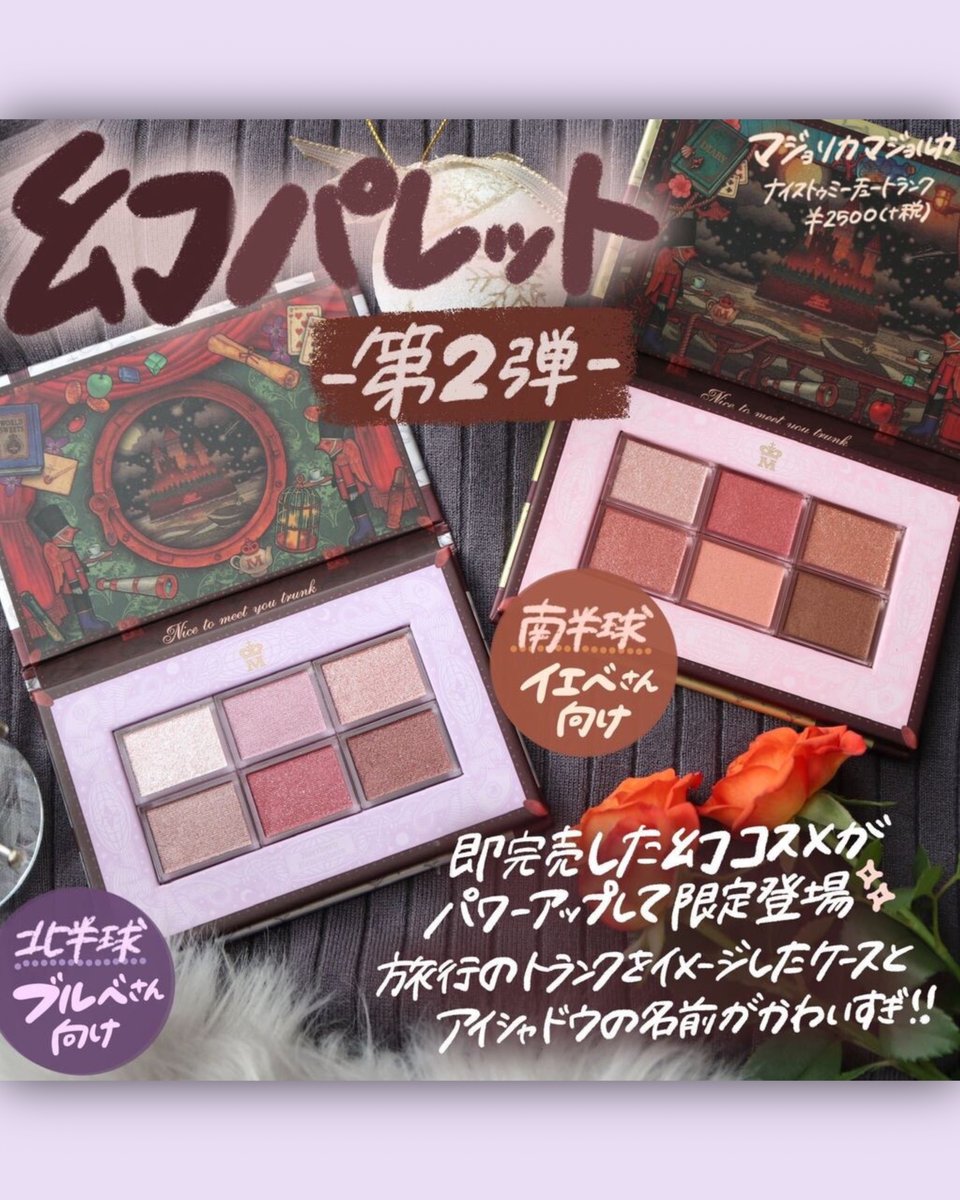 前回即完売した幻のパレットがパワーアップして帰ってきました🌹【マジョリカマジョルカ ナイストゥミーチュートランク】北半球と南半球をレビューしました🥰全部限定色で色名ももちろん、どっちの色もかわいすぎ👼💕
