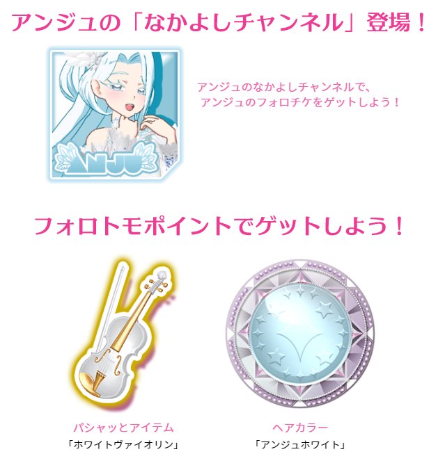 12/6(木)からの第5弾ではついにトッププリ☆チャンアイドル「アンジュ」さんが登場!「アンジュのなかよしチャンネル」で初登場の「カリスマクラス」のフォロチケをゲットしたら、ライブでフォロトモポイントをためてくださいね♪