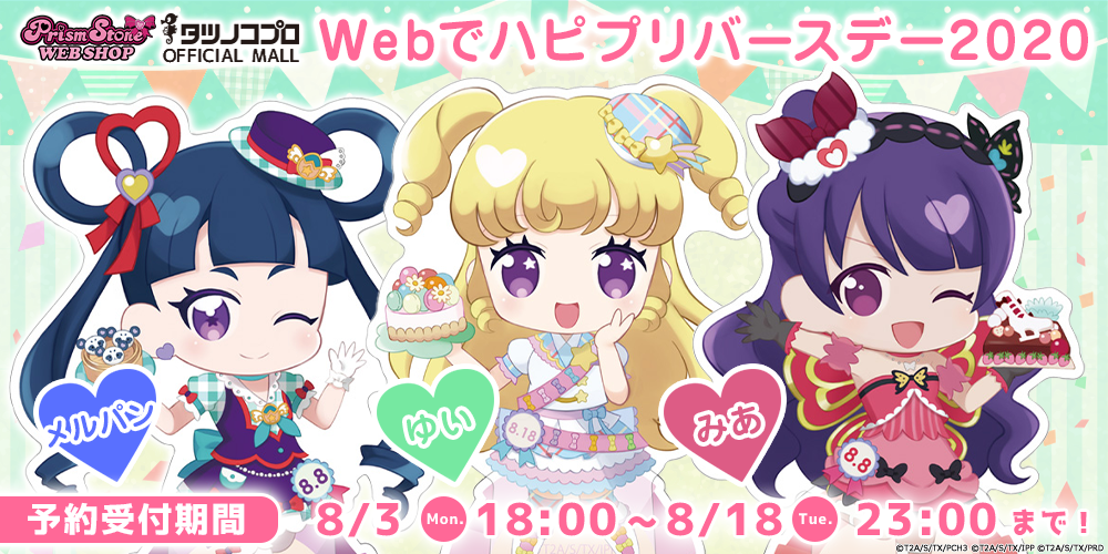 8/3(月)18時よりPrismStone WEB SHOPにて『Webでハピプリバースデー2020 メルパン/ゆい/みあ』グッズの予約販売を開始しました♪