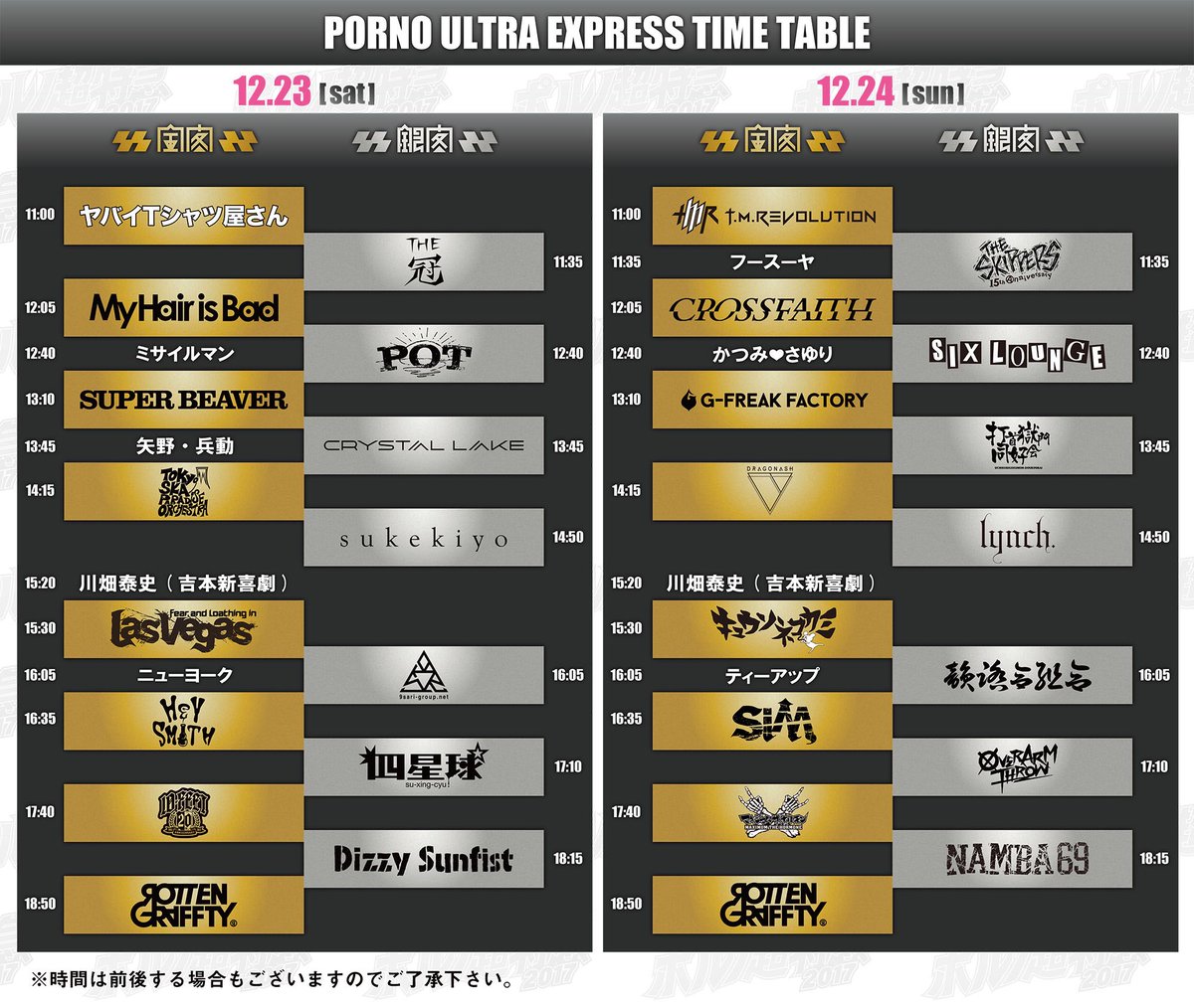 ポルノ超特急2017時刻表(タイムテーブル)の発表です!