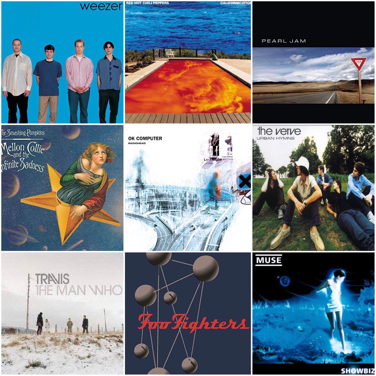 #weezer #redhotchilipeppers #pearljam #smashingpumpkins #radiohead #theverve #travis #foofighters #muse