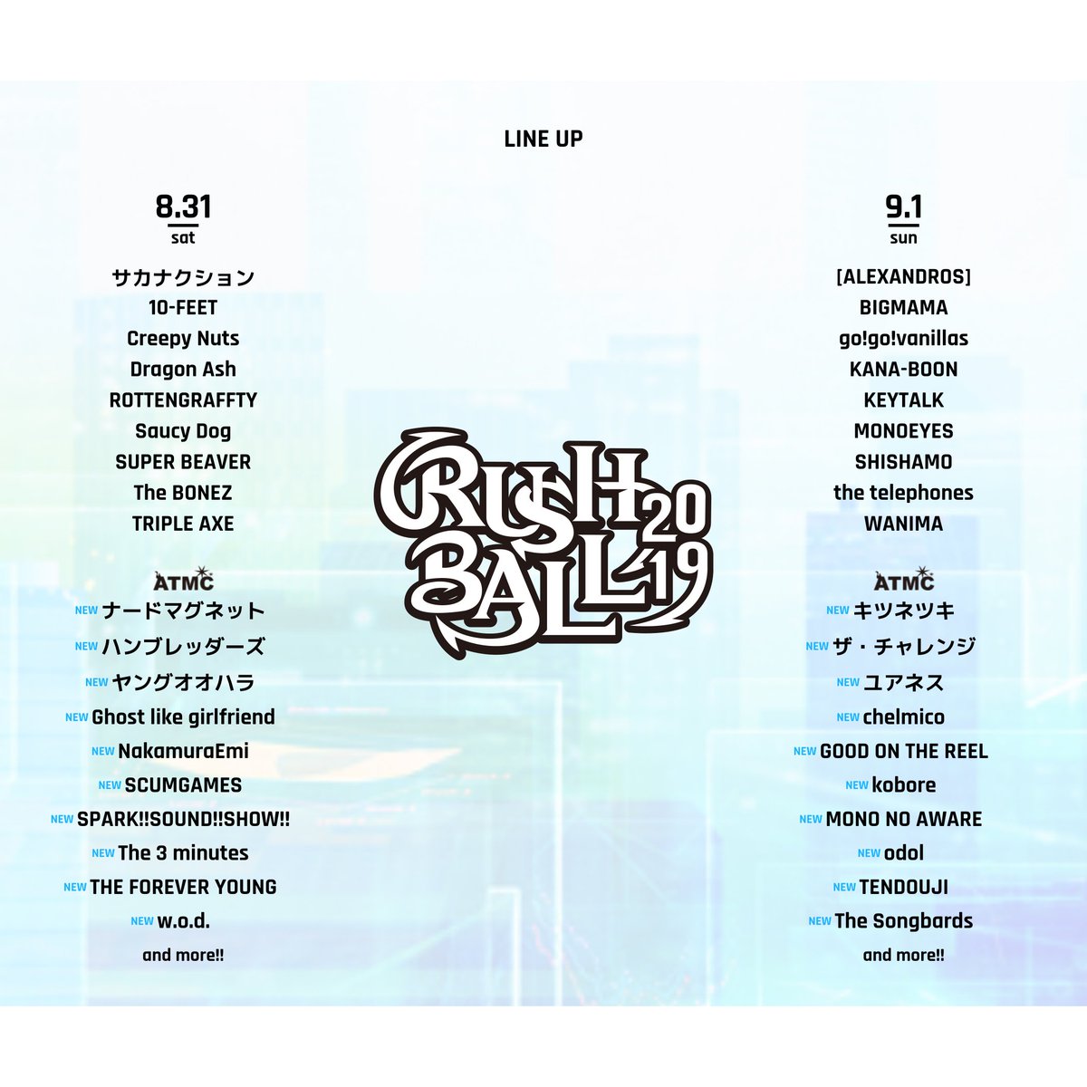 📢RUSH BALL 2019 出演アーティスト最終発表📢