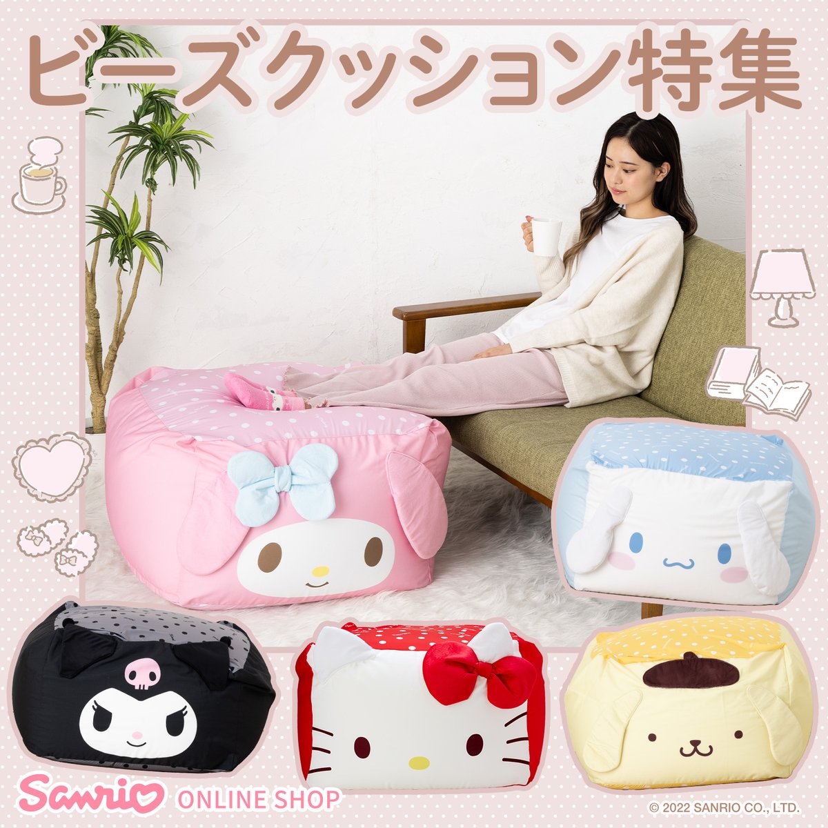 【サンリオオンラインショップ】体にフィットするビーズクッション☆サンリオオンラインショップのオリジナルグッズだよ♪中のビーズがいろんな姿勢にぴったりフィットしてリラックス♡ sanrio.eng.mg/9aaa0 #sanrioec