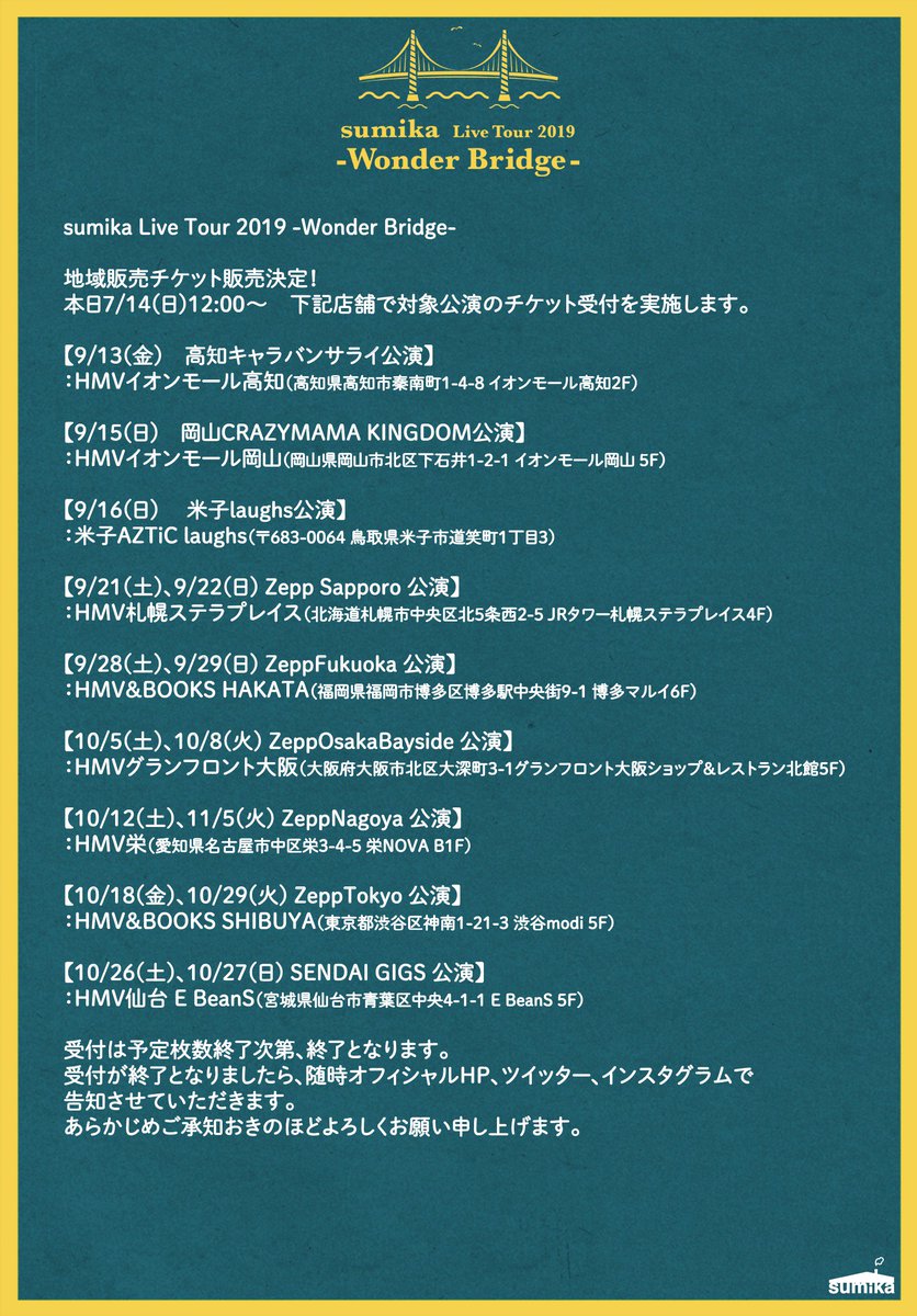 各地域の店舗、会場にてチケット販売をさせて頂きます。
