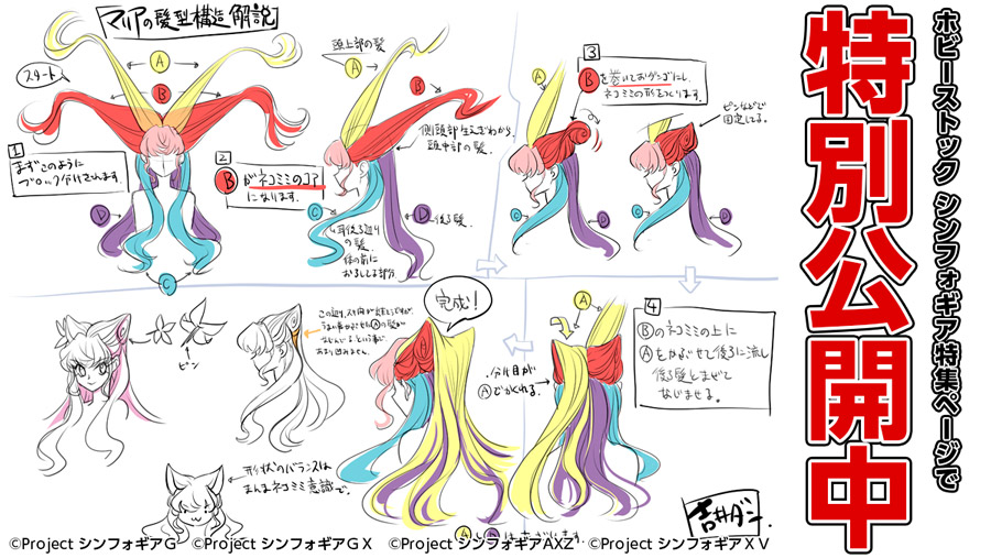 【8/7マリア誕生日記念】「マリア・カデンツァヴナ・イヴ」フィギュア化のために吉井ダン先生(@yoshiidan)に描き下ろしていただいた髪型構造解説をホビーストックの特集ページで特別に公開!!マリアのフィギュアは現在鋭意制作中!今後の続報にご期待ください! hbst.cc/1w9TMy9 #symphogear