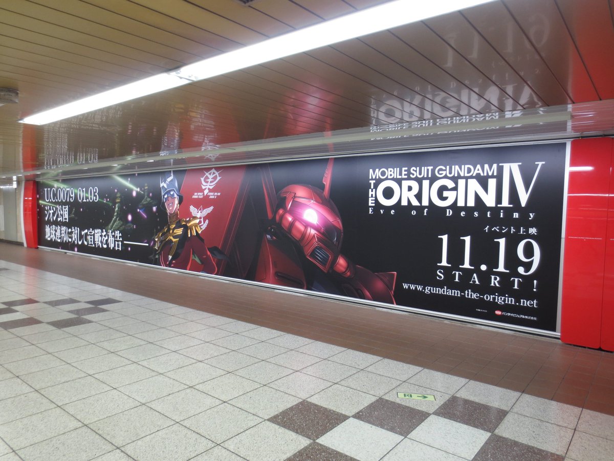 いよいよ今週11/19(土)より第4話上映開始!本日より11/20(日)まで新宿駅・メトロプロムナードにシャアとザクが出現してます。近くへお越しの際はぜひチェックして下さい。 gundam-the-origin.net/index.html (BV・ZAKI) #the_origin