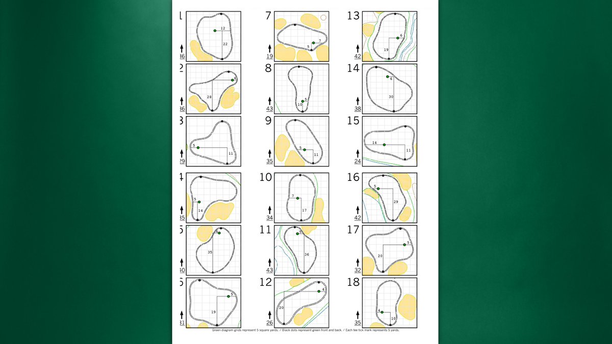 The pin placements for the final round of #themasters.