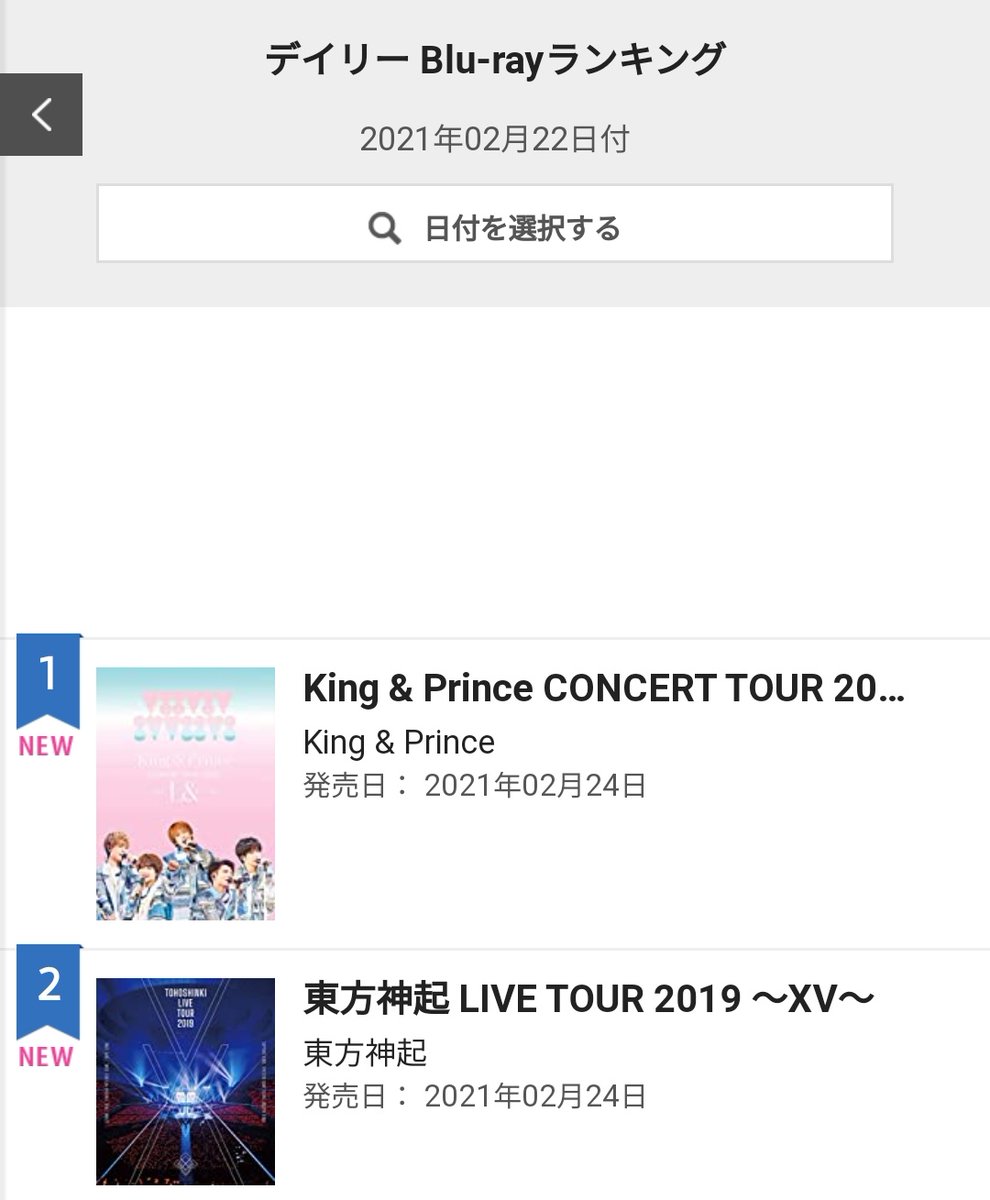 210222 오리콘 데일리 차트 동방신기 "東方神起 LIVE TOUR 2019 ~XV~"