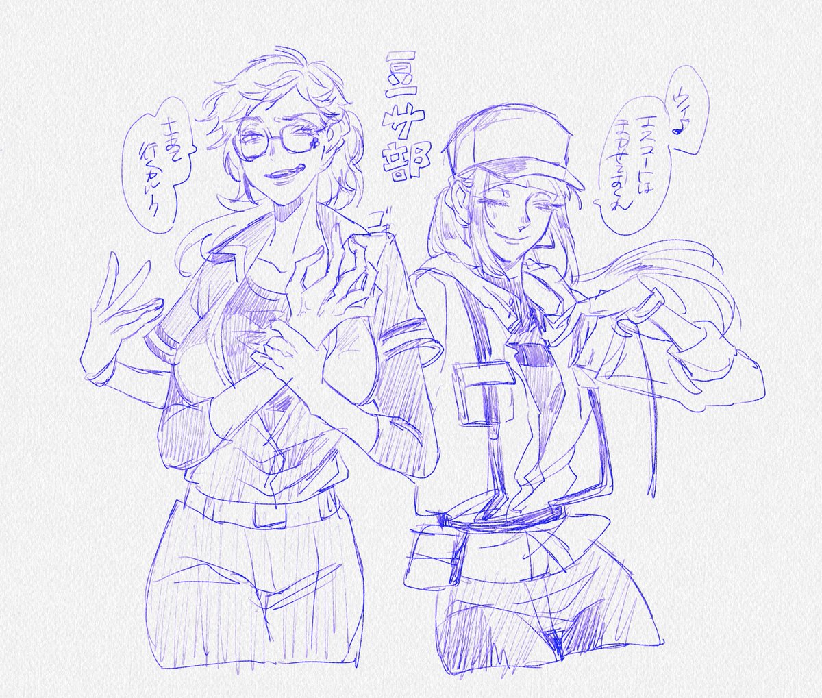 部活中にやらかしたサ部。気を抜くと中身が丸見えになっちゃうので互いに気をつけあってたら可愛い😌