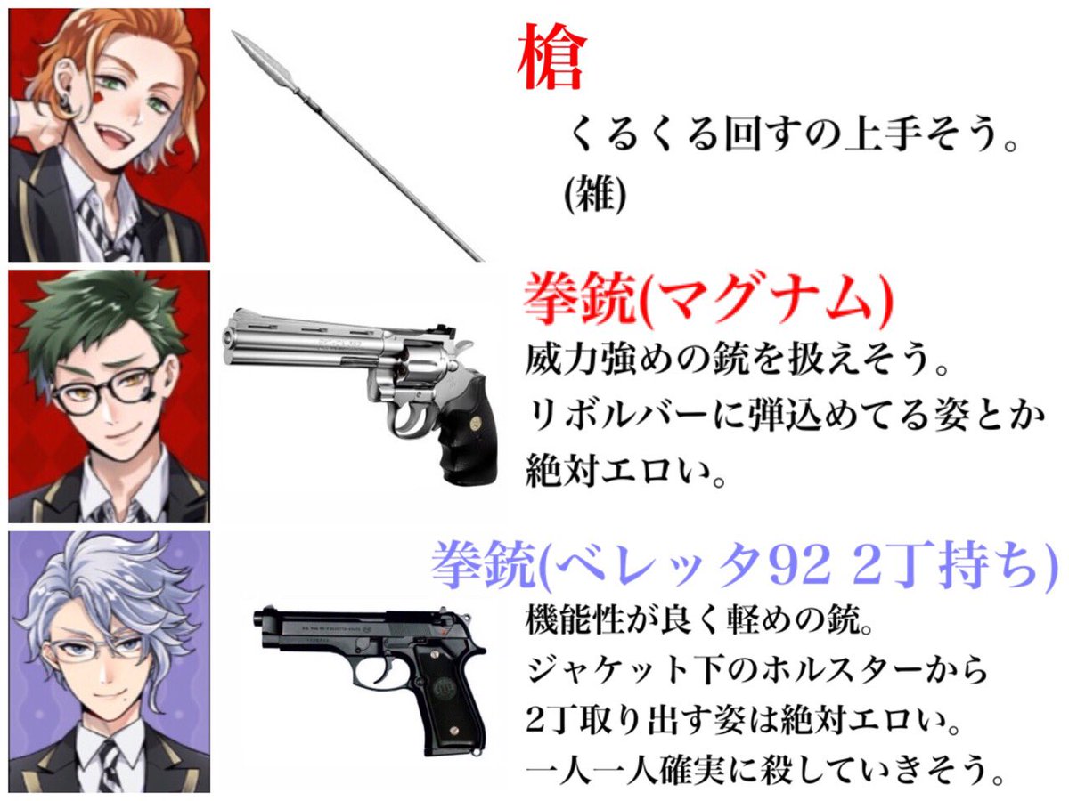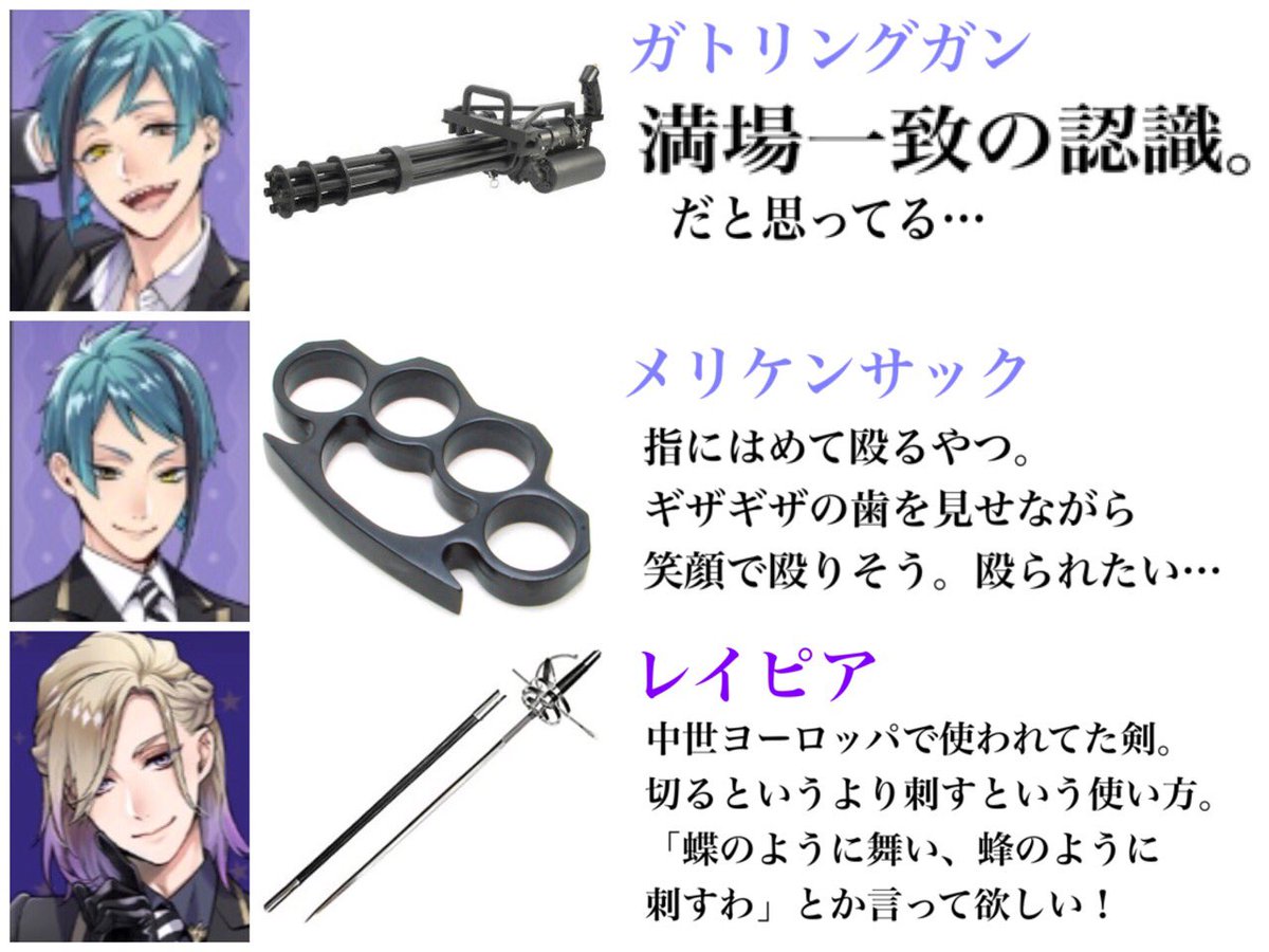 独断と偏見による戦闘時に使いそう(使って欲しい)武器。