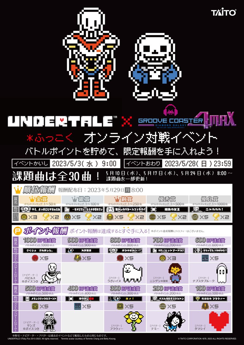 【AC】アーケード版グルーヴコースターで、5/3(水)~「復刻 UNDERTALEオンライン対戦イベント」開催‼