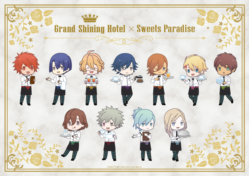 本日12/10(金)より、名古屋スパイラルタワーズ店にて『Grand Shining Hotel』企画のコラボカフェがスタートいたしました! ただいまスイパラアプリにてご予約受付中です♪