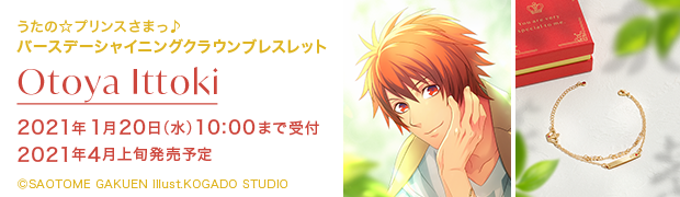 【受注生産】1年を通して「うたの☆プリンスさまっ♪」アイドルの誕生日をお祝いする、バースデーアクセサリーシリーズ2021Ver.「シャイニングクラウンブレスレット 一十木音也」の受付を開始しました!1月20日AM10時まで! utapri.com/sp/accessory20… #utapri