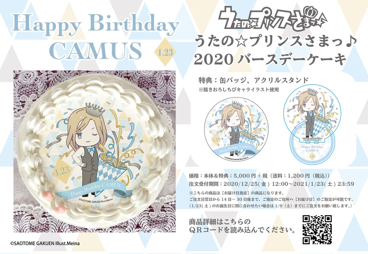 【うた☆プリ】【アニメイト通販限定】描きおろしのちびキャラをプリントしたBDケーキとグッズセットをご自宅にお届け♪「カミュ」さんの受付が本日よりスタートです!