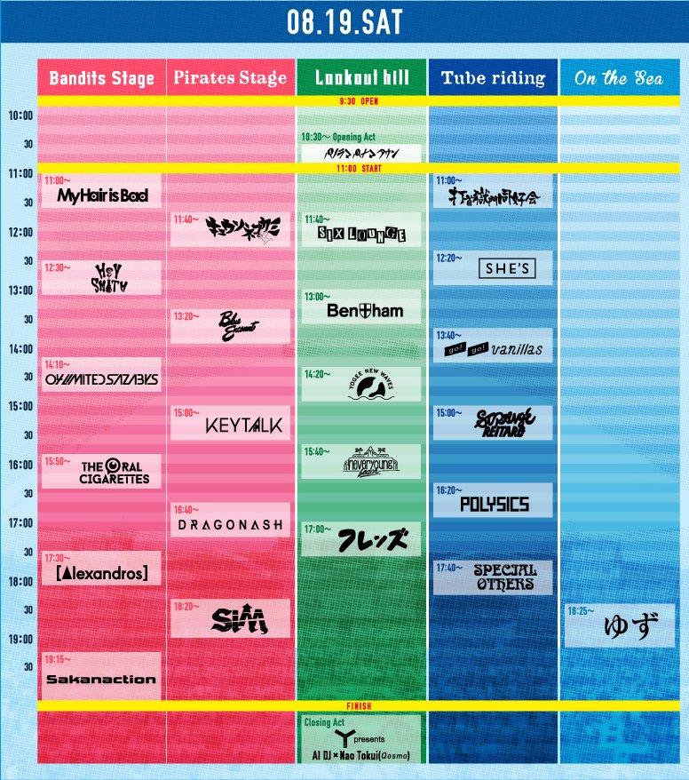 8/19(土):打首獄門同好会/キュウソネコカミ/サカナクション/フレンズ