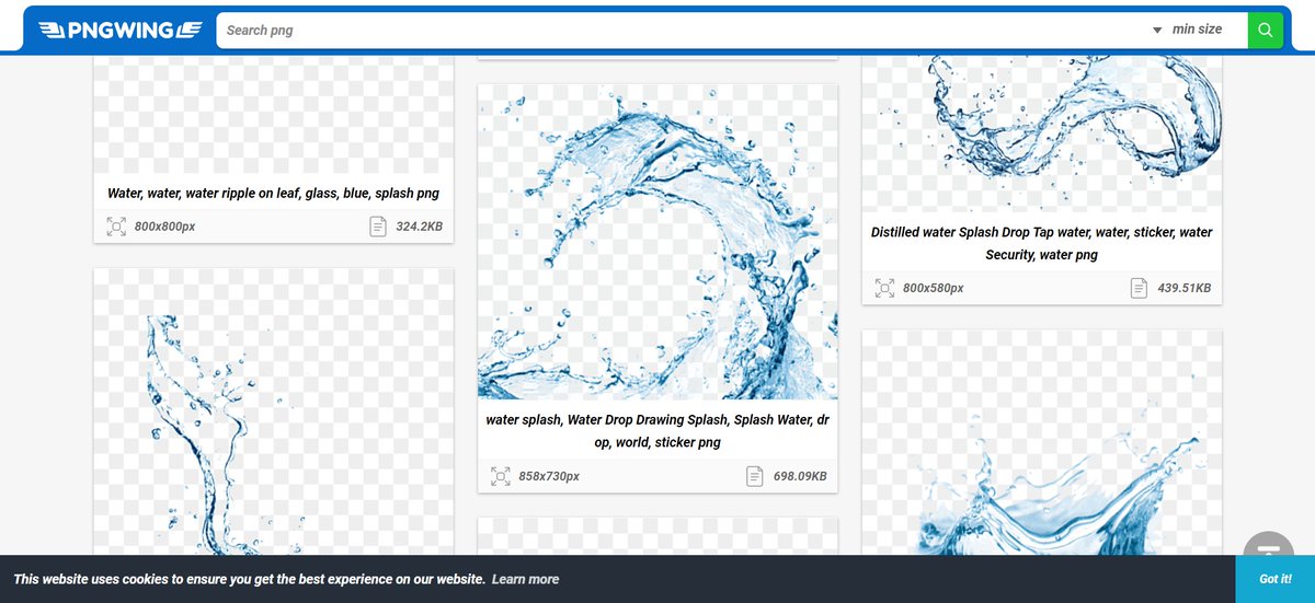 をゲットできるサイト4選!形式はピング(png)です。右下以外はPNG特化。水系素材の探し方→しぶき系は「スプラッシュ」、ぶくぶくは「バブル」、しずくが落ちて王冠みたいになるのは「ミルククラウン」です。サイトURLはコメントらんで😊グッナイ🌙