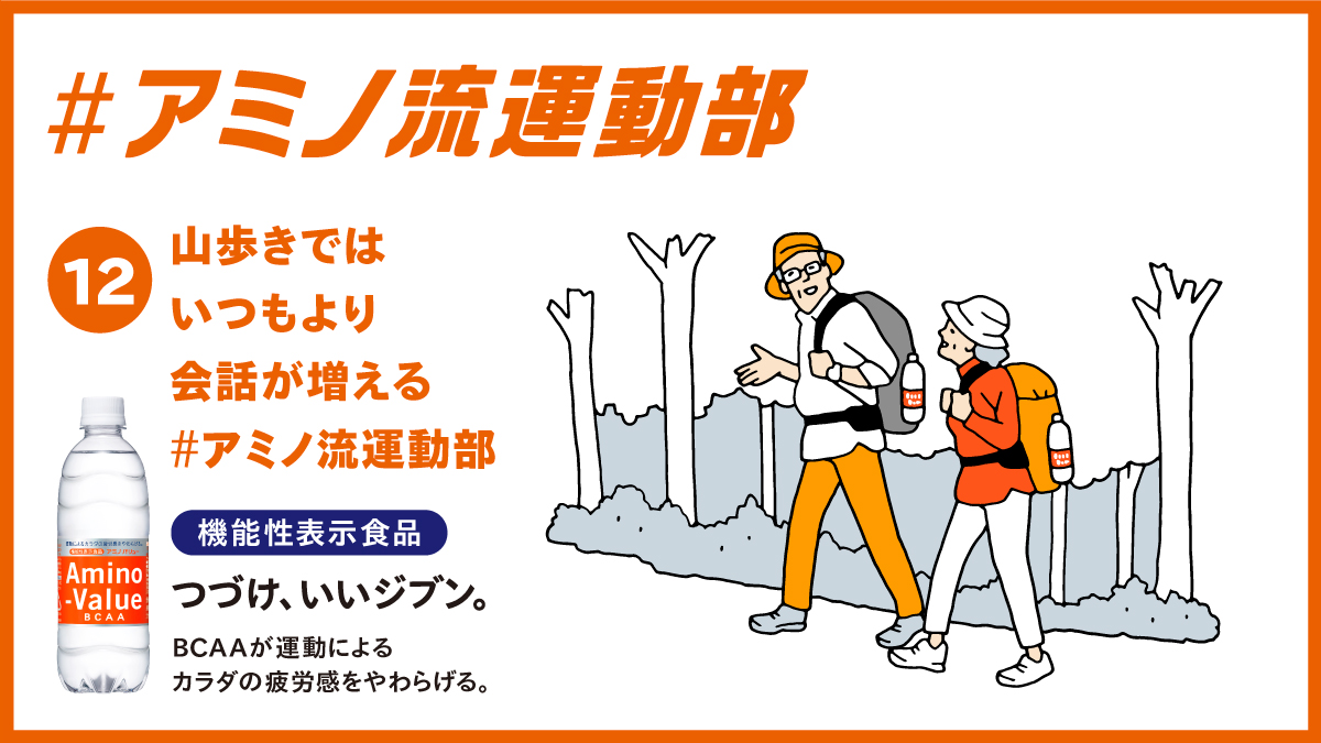 家よりも会話が弾むのがうれしいんです。歩く前には二人で #アミノバリュー 。BCAAが疲労感をやわらげます。
