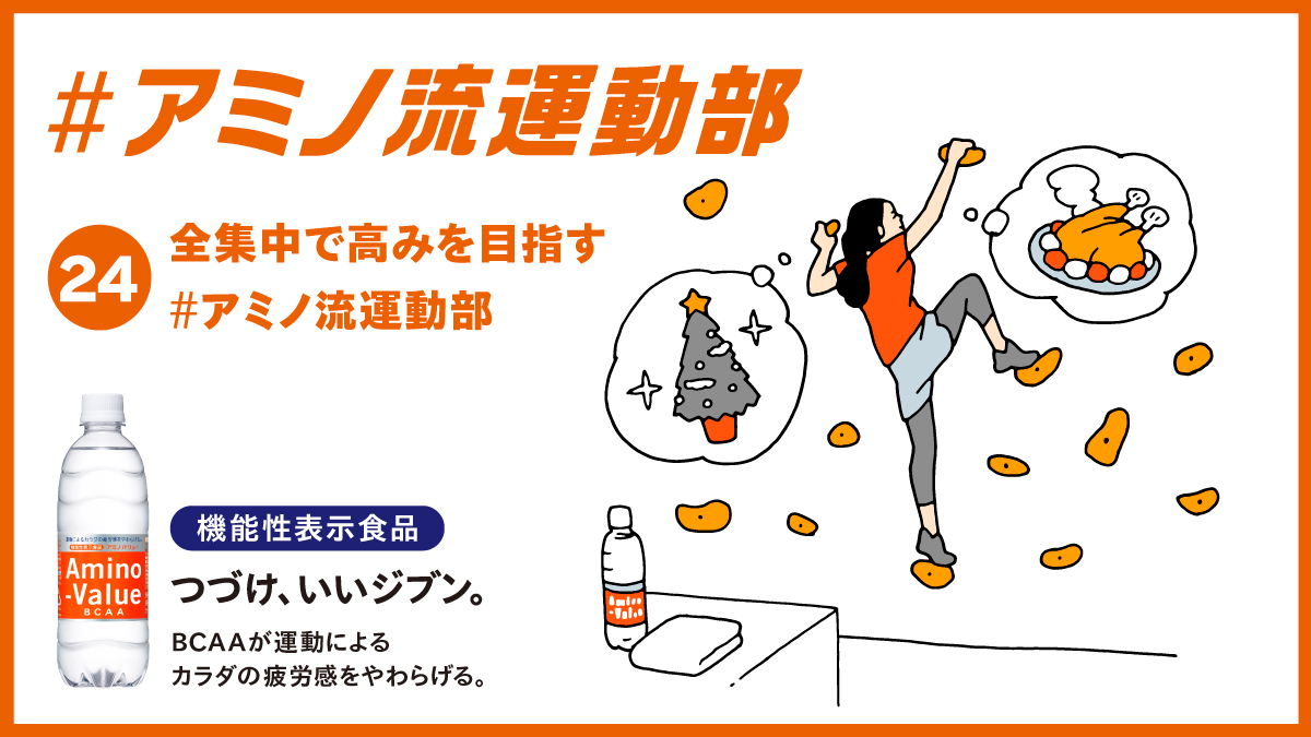 クリスマスパーティーが待ってるけど、その前に今日も登っておきますか!登る前には #アミノバリュー!
