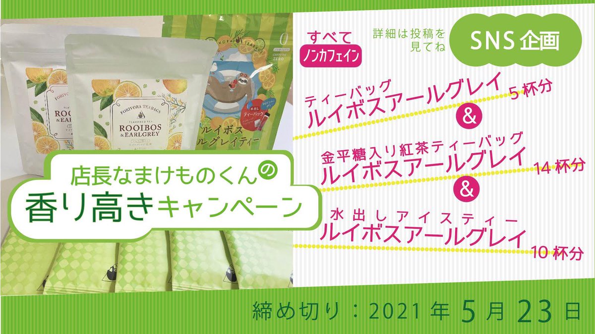 #アールグレイはforivora #ルイボスはforivora #店長なまけものくん #懸賞
