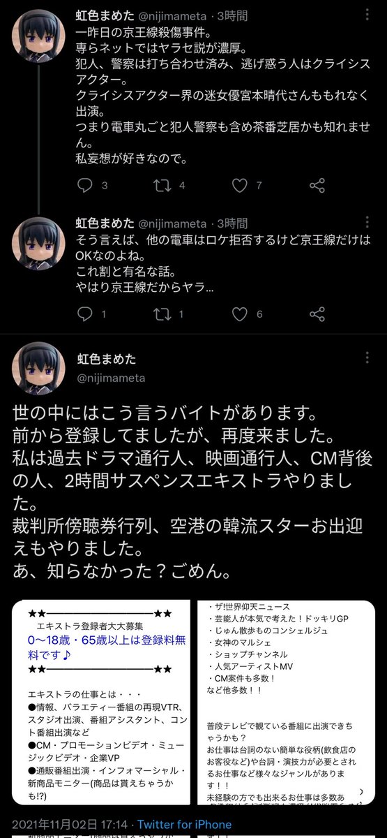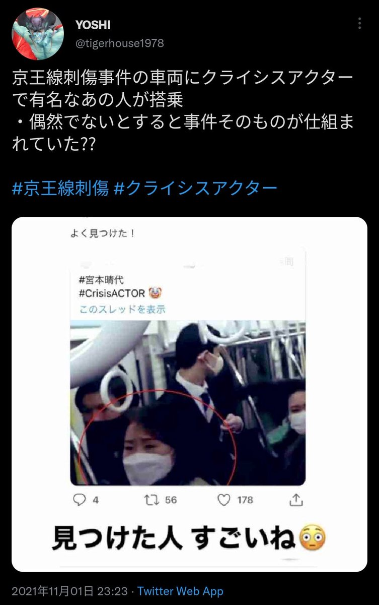 【悲報】京王線襲撃事件、電車内で逃げ惑う人達の動画に某TBS社員に多少似ている人が映っていたため、陰謀論者界隈で襲撃自体が『選挙から国民の目を逸らすためのエキストラによるでっちあげ事件』扱いされる