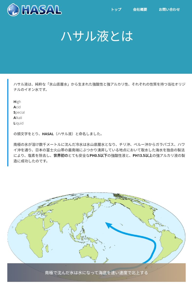 強酸性&強アルカリ性の性質を両方持ち、ひとたび飲めば癌も治るとされる超神水。南極の氷山の底層を溶かして作る。反ワク界隈で流行中。