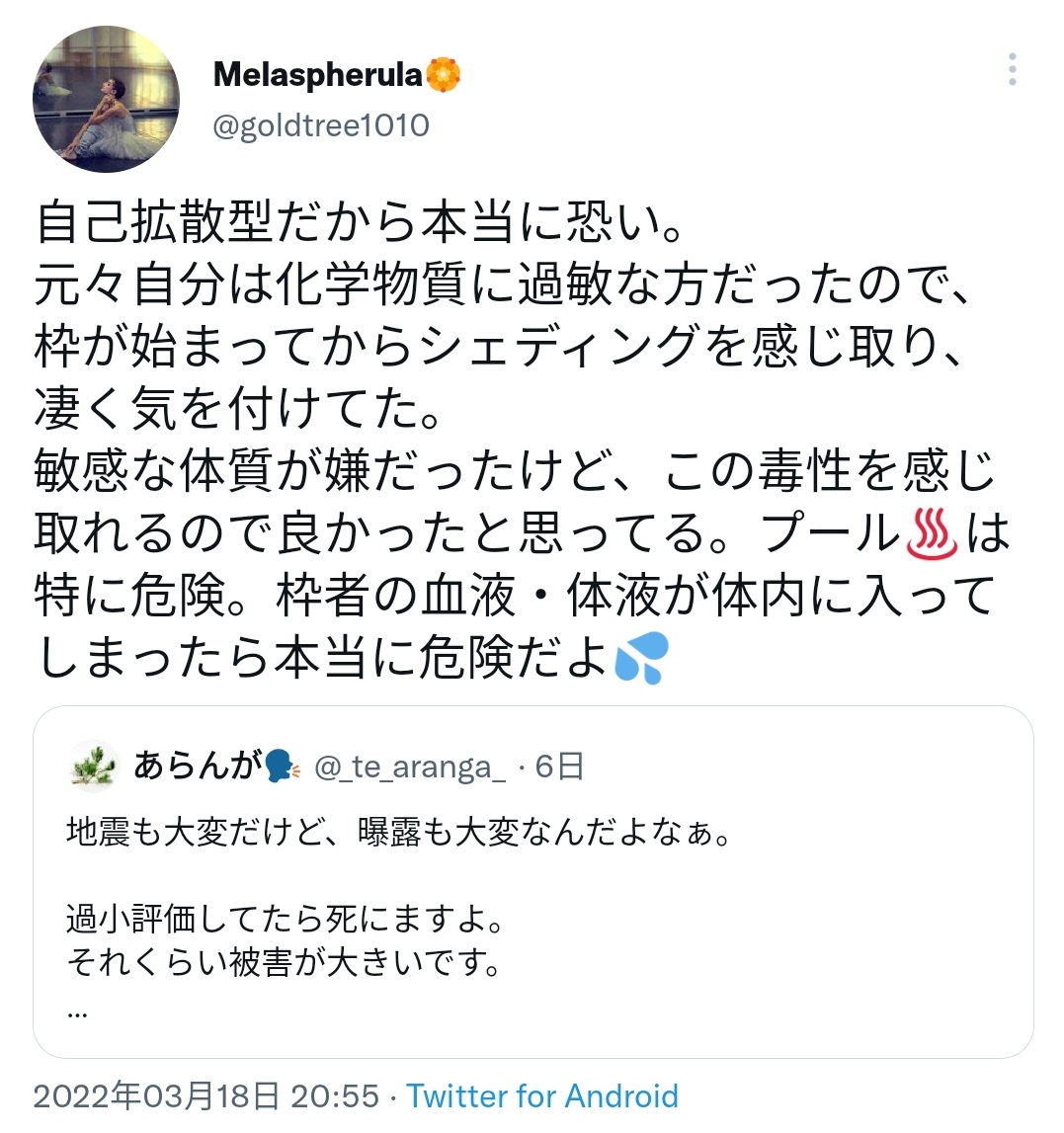 本来は別の意味を持つ医学用語だが、反ワク界隈では「ワクチン接種者からワクチン毒が伝搬すること」を意味する