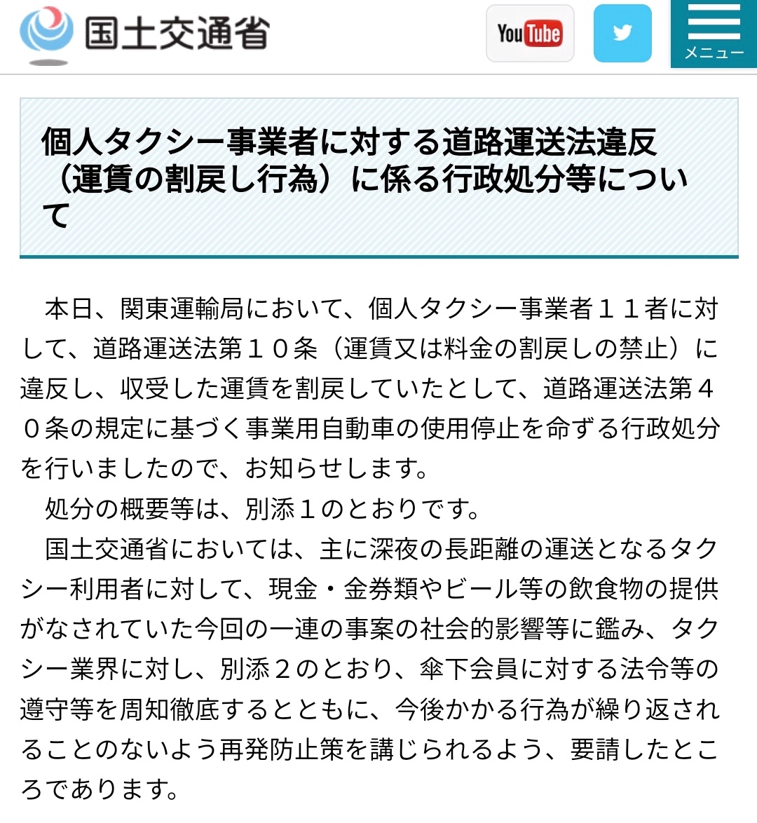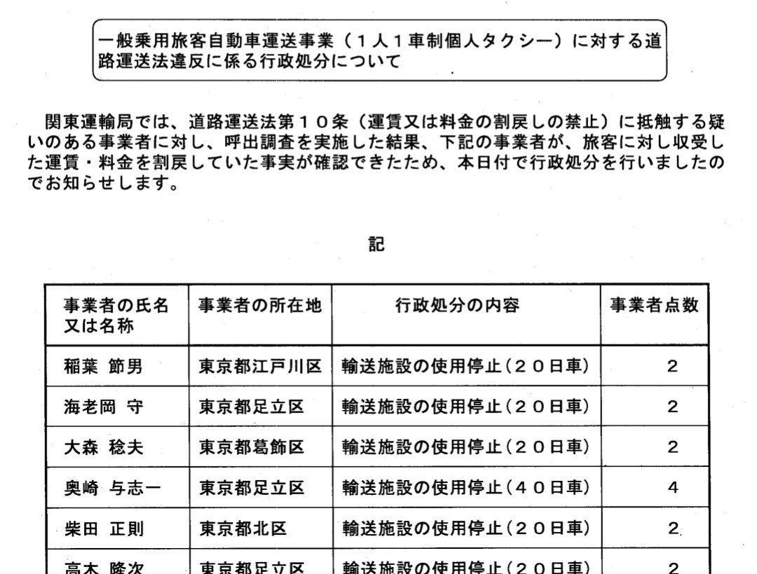 ちなみに、タクシーは電車やバス等と同じように「公共交通機関」なので、基本的に値引きやキャッシュバックが禁止されています。過去には乗客に値引きしたりビール券を渡したりしたタクシー会社が業務停止の行政処分を受けたことも…